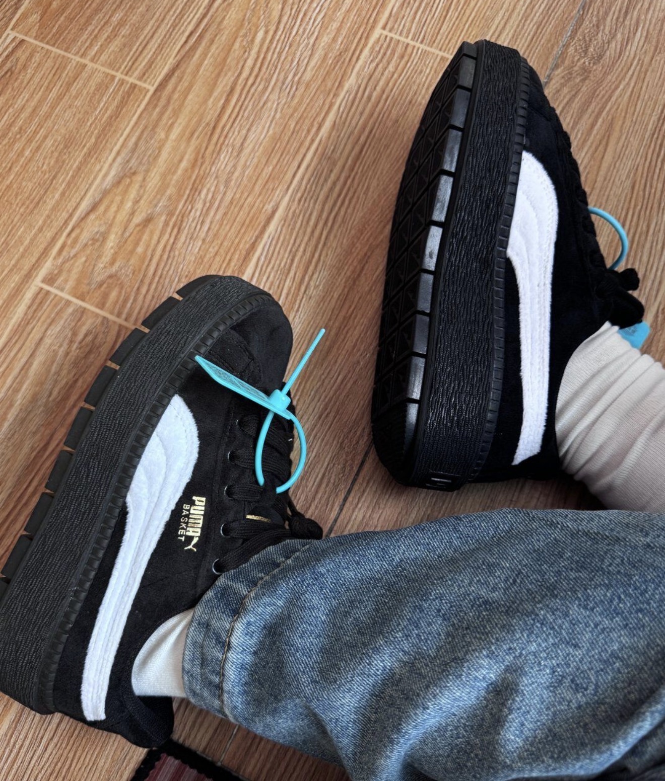 PUMA彪马 Platform Trace V 绒面革 舒适 耐磨减震 低帮 板鞋 女款 黑白
