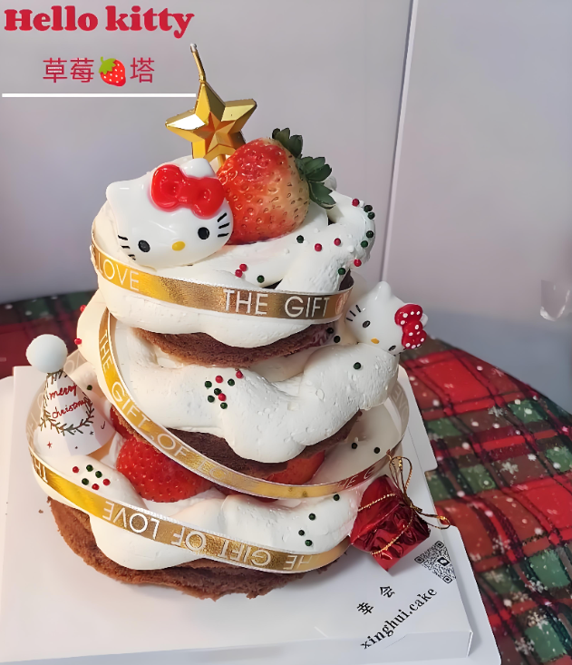 4英寸草莓生日蛋糕:helloKitty草莓碗